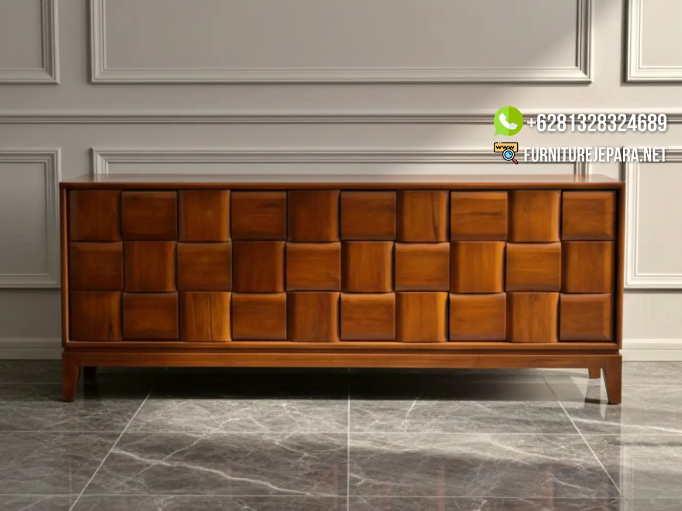 Furniture entertainmen ini dibuat dengan memperhatikan kualitas serta desainnya, Bufet Minimalis Kayu Jati Estetika Ruang Tamu kami tawarkan dengan kombinasi lemari hias penyimpanan pajangan keindahan estetika dan kepraktisan fungsional. Tidak hanya sebagai tempat untuk meletakkan hiasan atau televisi, tetapi juga sebagai penyimpanan yang elegan untuk koleksi media dan barang berharga lainnya. Dengan Bufet TV Minimalis, Anda dapat menciptakan ruangan tetap rapi tanpa mengorbankan gaya dan keanggunan. Sempurna untuk mengakomodasi kebutuhan ruangan minimalis Anda sambil mempertahankan pesona furniture jepara yang tak lekang oleh waktu.
