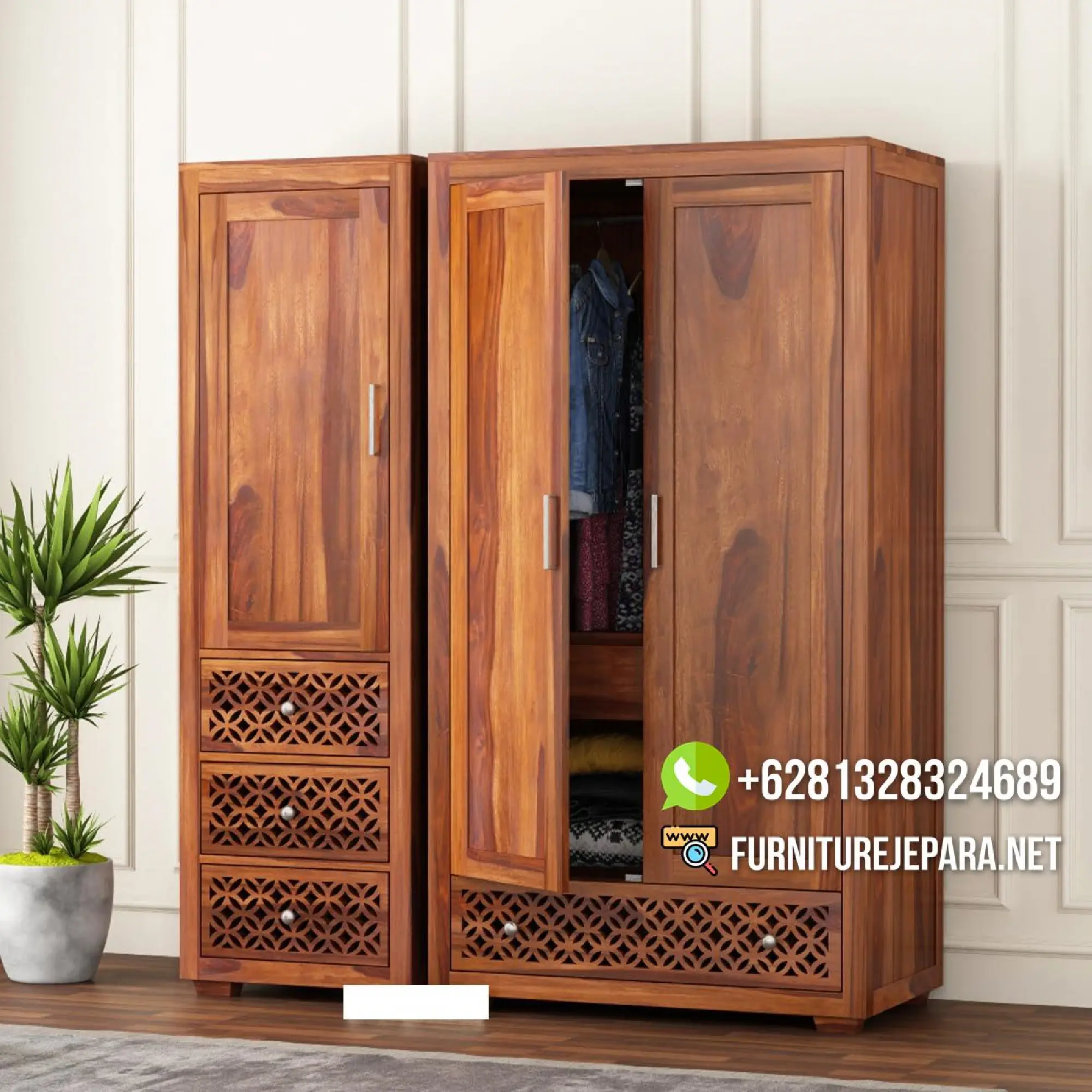 Anda berminat dengan produk Lemari Pakaian Klasik Terbaru asli jati jepara ini ? Untuk melakukan pemesanan Lemari Pakaian Kayu Jati Minimalis Terbaru atau ingin berkomunikasi dengan kami terlebih dahulu, anda bisa langsung menghubungi kami di kontak yang telah kami sediakan.